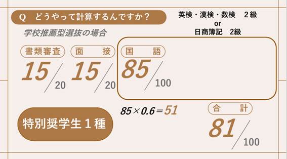入学者選抜の点数計算について 推薦型選抜編