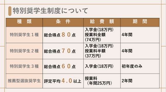 70点をオーバーしていますので、特別奨学生2種に該当しました。