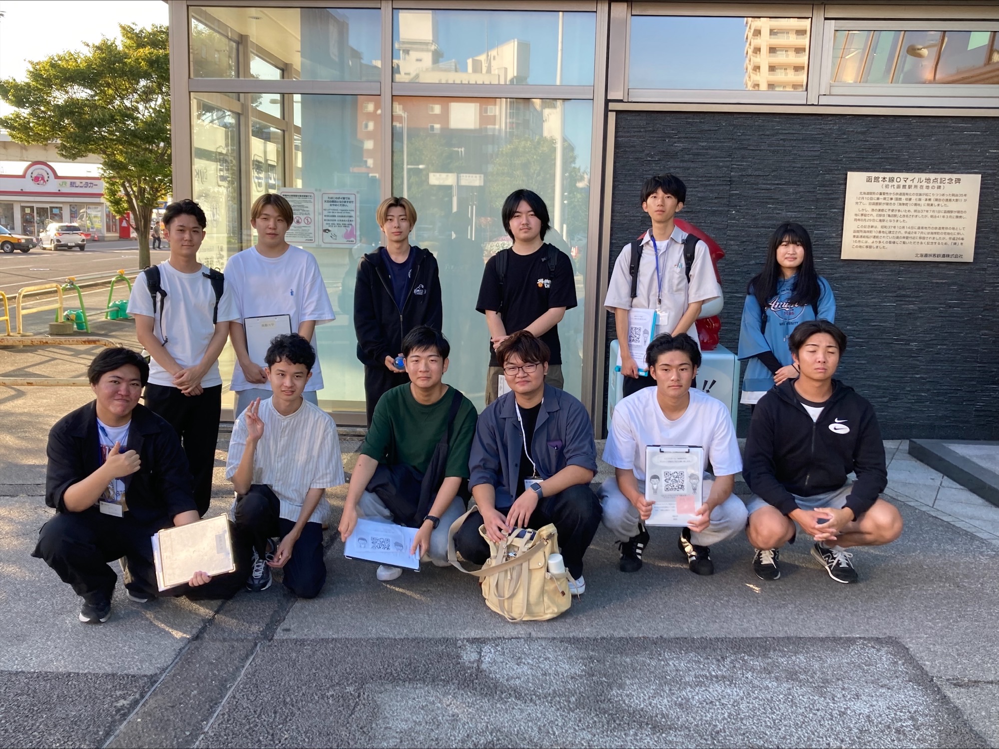 2025年10月3日、本学の薗諸栄専任講師が担当する「商学実習Ⅰ」および「専門ゼミナールⅠ」の授業の一環として、1年生12名、3年生3名の計15名が、函館駅および金森赤レンガ倉庫にてアンケート調査を実施しました。