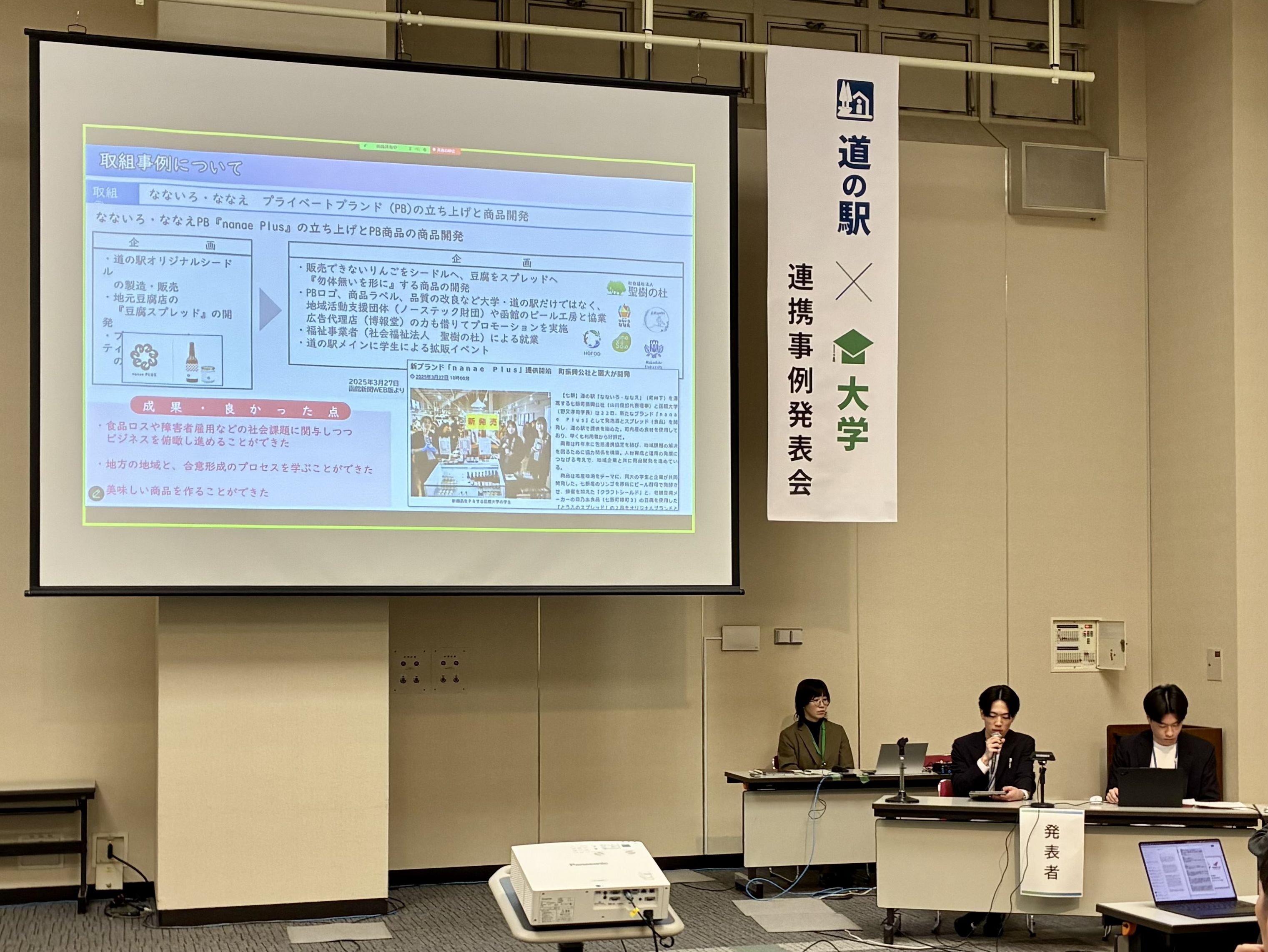 本学からは昨年同様、七飯町「道の駅 なないろ・ななえ」に加え、昨年9月に包括連携協定を締結した鹿部町の「道の駅 しかべ間欠泉公園」との取組を発表させて頂きました。