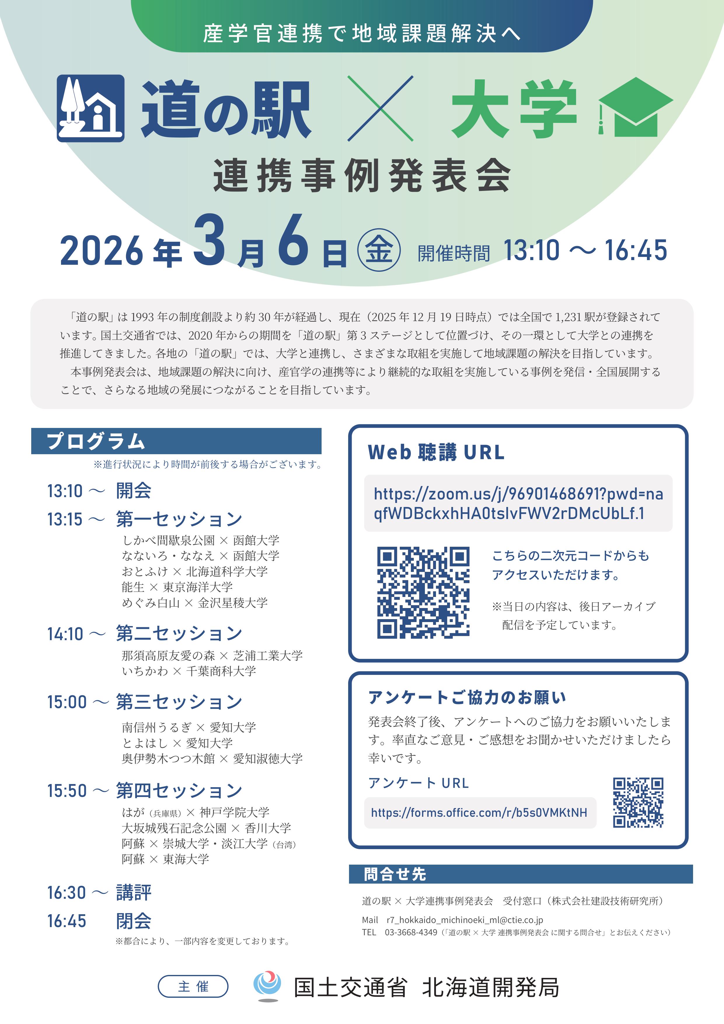 去る、3月7日(金)に、令和7年度 国土交通省主催「道の駅×大学 連携事例発表会 」が、開催されました。